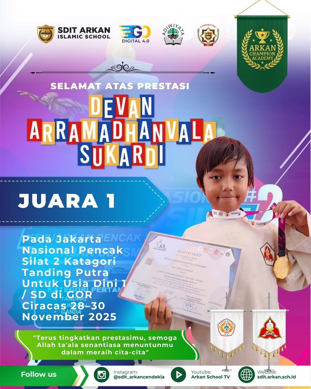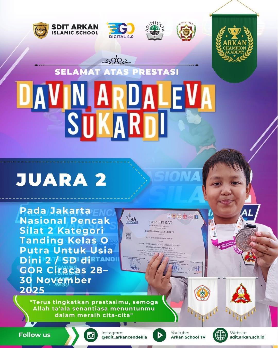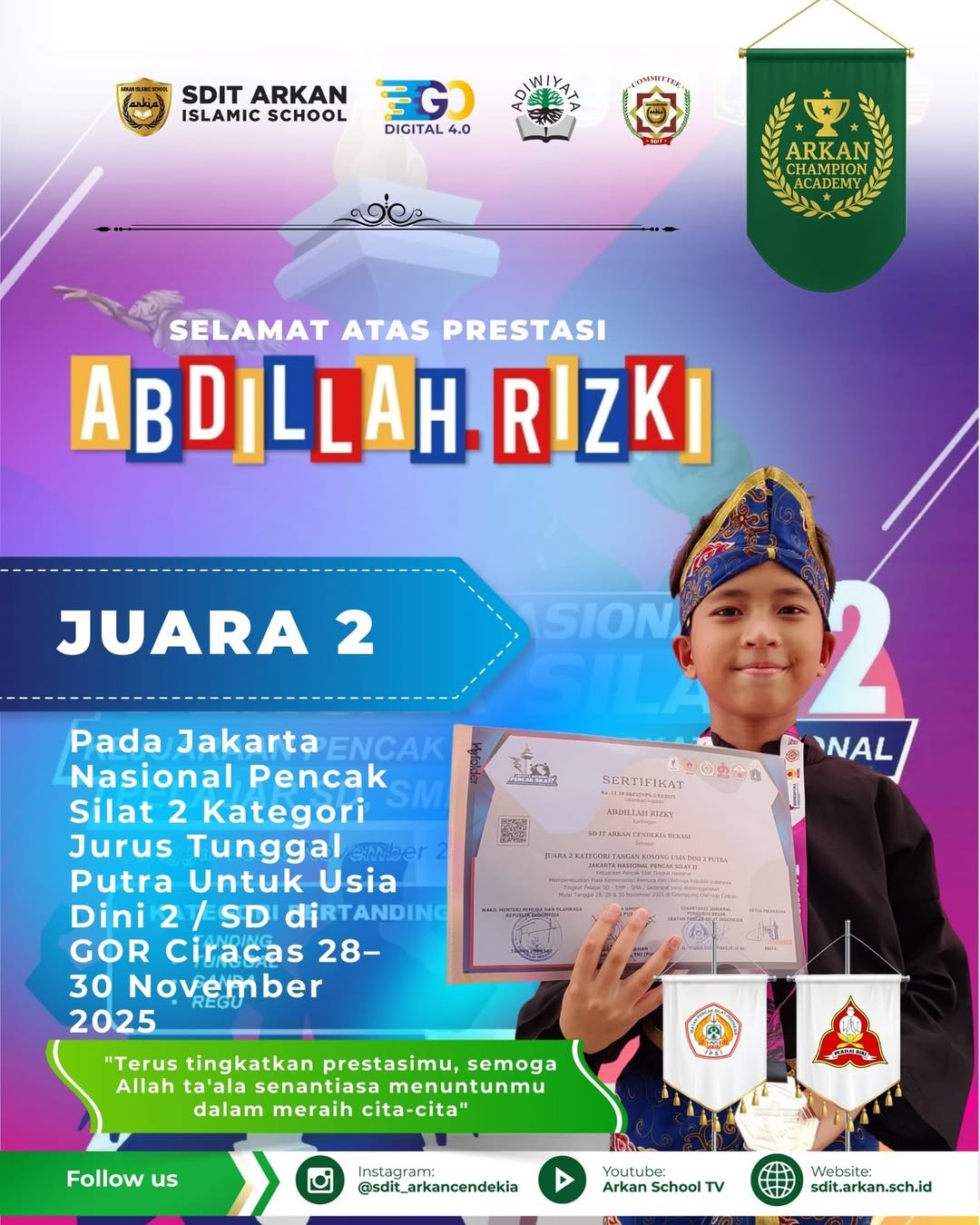 Prestasi membanggakan kembali ditorehkan oleh SDIT Arkan Cendekia pada ajang Jakarta Nasional Pencak Silat 2025. Dalam kompetisi yang digelar di GOR Ciracas […]